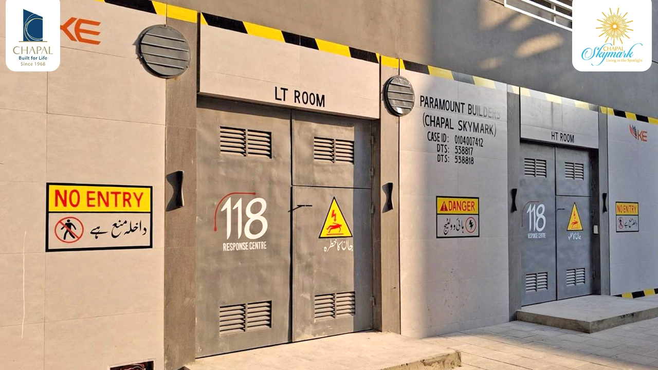 The list of facilities included in Chapal Skymark is quite extensive. Easing your everyday life, the project has an efficacious security system, including Visitor Management, CCTV, and Car Parking Barrier System. Apart from that, multilevel car parking, elevators, cargo lift, decentralization and filtration plants, fire alarm and ... fire fighting system, emergency escapes, and continuous supply of utilities interpret Chapal Builder’s premium standards. The fully equipped health club, luxurious Clubhouse, Swimming Pool, Senior Citizen’s Lounge, and BBQ and Play Area are a few of the various recreational facilities of the project.